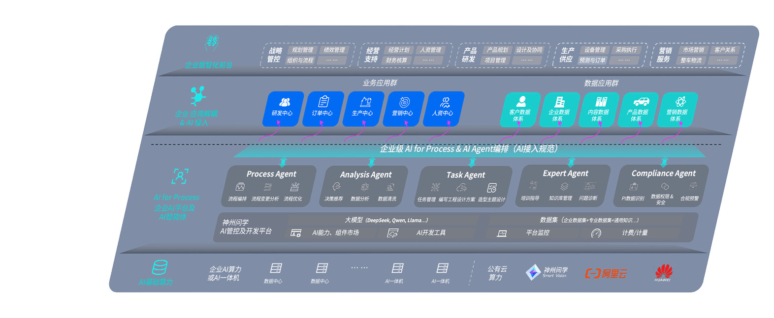 星耀国际问学智车解决方案是一套基于AI技术的汽车行业智能化系统,,,,覆盖从底层算力到顶层AI应用的全栈方案。。方案由算力层、、、、模型层和应用层组成:算力层,,,,方案支持多种一体机配置,,,具备云端灵活部署、、、多云适配以及动态优化计算资源的能力;模型层,,,星耀国际问学平台版提供了企业级AI应用一站式构建与管理平台,,,支持基于后训练强化技术的汽车企业专属模型的训练、、评测和运营;应用层,,,,星耀国际问学DeepSeek版提供包括超级员工、、智能招采、、、智能营销、、、、智能客服、、、AI for BI等一系列解决方案,,可助力汽车行业实现数字化转型,,,让管理更智能、、响应更敏捷。。